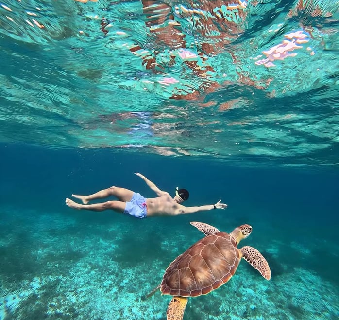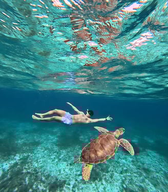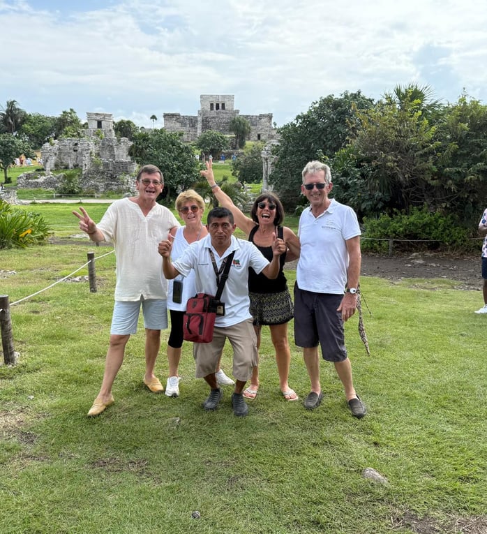Package 1: Private visit to the Mayan ruins of Tulum, accompanied by a certified French-speaking Mayan guide. The visit lasts 1 hour and 30 minutes. Afterwards, we will head to Akumal, where a captain with his boat and necessary equipment (masks and snorkels) will guide us for snorkeling in the bay, where we can see green turtles, colorful fish, and rays. This activity lasts 1 hour and 20 minutes. Then, we will enjoy a delicious lunch at a local restaurant and, finally, we will refresh ourselves in the Cenote Azul, a natural paradise with crystal-clear waters. In the cenote, we can observe iguanas and coatis in their habitat.